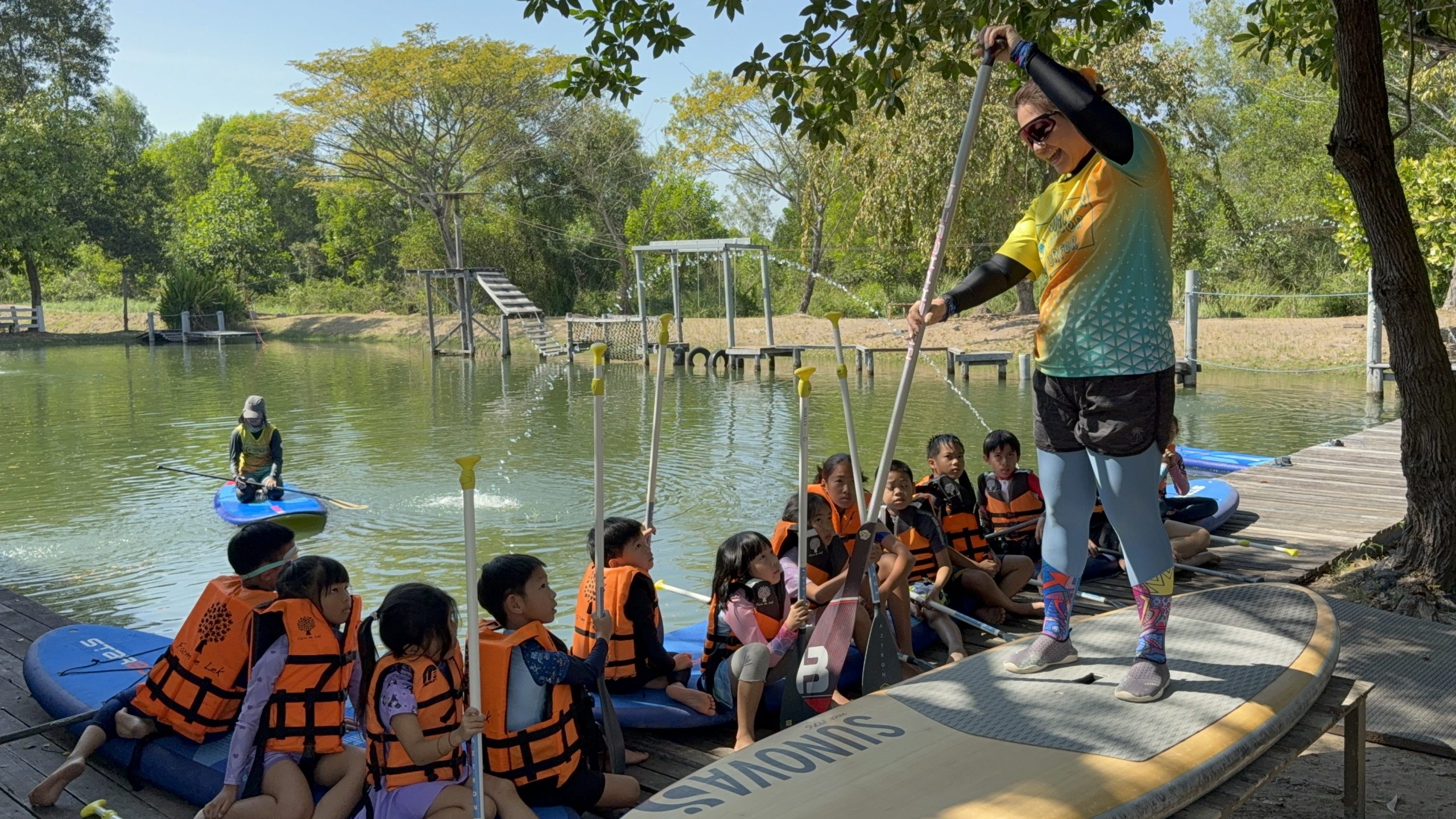 ภาพบรรยากาศวันเด็ก Manta kids ร่วมกิจกรรมวันเด็ก มีการจัดการสอน Basic paddle board ที่ Farm de lek 🛶