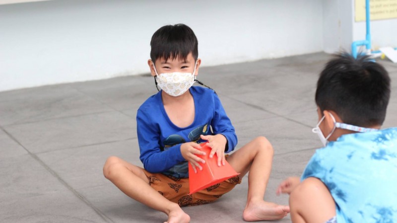 👉🏻 ครูผู้สอนและเจ้าหน้าที่ สวมใส่ Mask และ Facesheild ตลอดเวลา